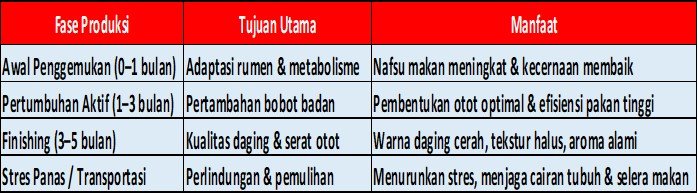 Perlindungan Stres Panas: Antioksidan dan osmolit alami menjaga stabilitas fisiologis domba saat suhu lingkungan ekstrem.