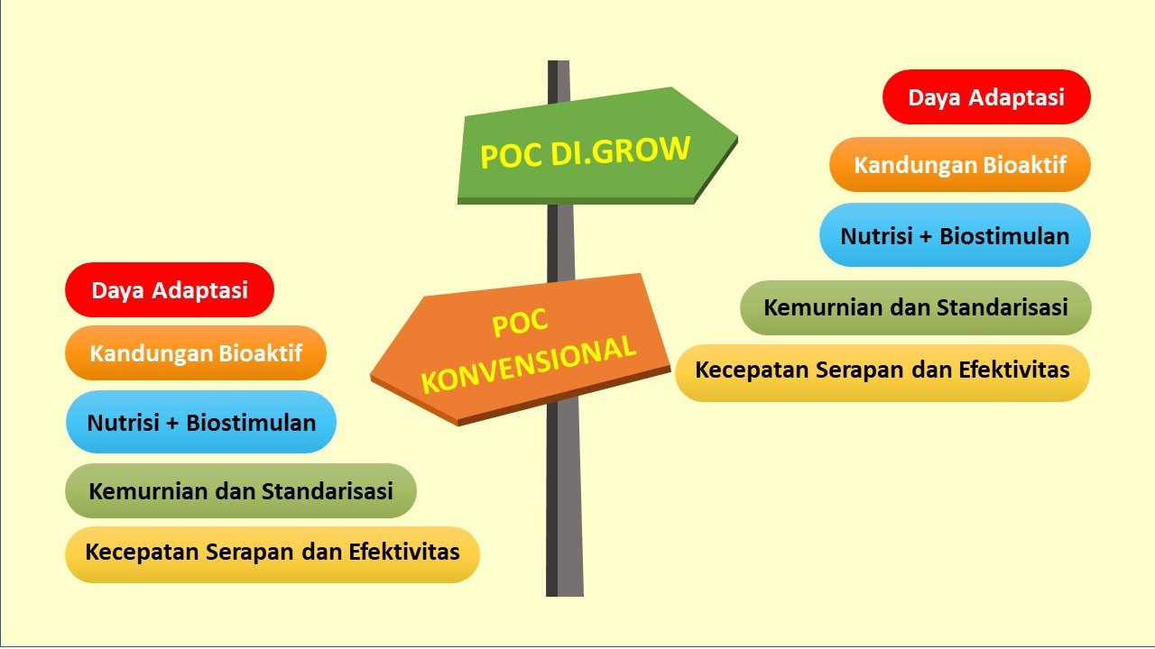 POC D.I GROW merupakan inovasi unggul dalam pertanian modern yang menggabungkan unsur nutrisi, hormon alami, dan perlindungan biologis bagi tanaman. Dibandingkan dengan pupuk organik cair biasa, POC D.I GROW, menawarkan efek yang lebih cepat, manfaat yang lebih luas, dan potensi hasil panen yang lebih tinggi — terutama dalam kondisi budidaya yang menantang.