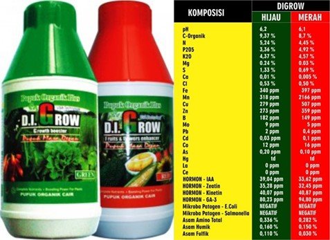 Pupuk DI.Grow  mengandung Asam Humat dan Asam Fulvat. Senyawa organik ini mampu mengikat ion logam seperti Fe, Al, dan Ca yang biasanya mengikat fosfat di tanah, sehingga fosfat menjadi lebih larut dan mudah diserap akar.