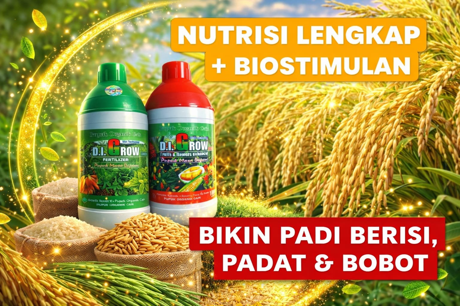 Pemanfaatan pupuk organik DIGROW yang berbasis nutrisi lengkap dan biostimulan (ZPT, Asam amino , Asam Algina, asam fulvat dan humic Acid) dapat menjadi salah satu strategi budidaya modern untuk meningkatkan produktivitas dan kualitas hasil panen padi secara berkelanjutan.